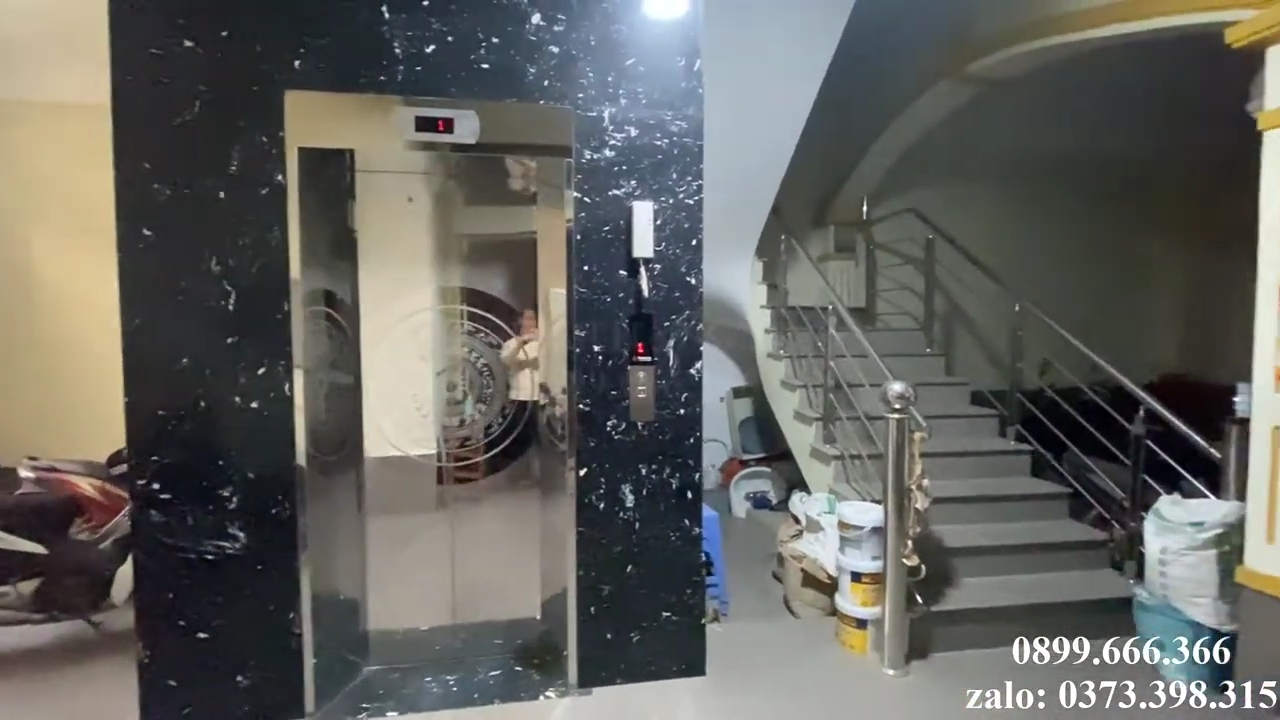 Căn nhà này có tổng cộng 6 tầng, được sử dụng chủ yếu làm chung cư mini cho thuê, trong khi tầng trên cùng được cải tạo thành một không gian homestay để thư giãn và nghỉ ngơi. Thang máy được bố trí ngay cạnh khu vực cầu thang bộ, đây là vị trí khá phổ biến trong các công trình nhà phố vì giúp tối ưu diện tích và thuận tiện cho việc di chuyển giữa các tầng.