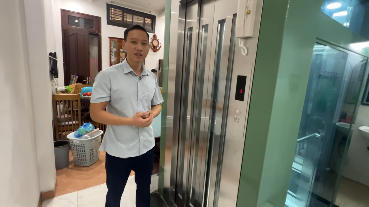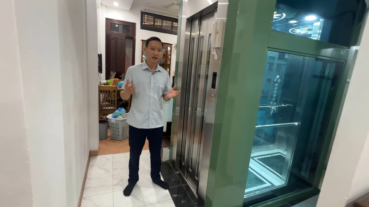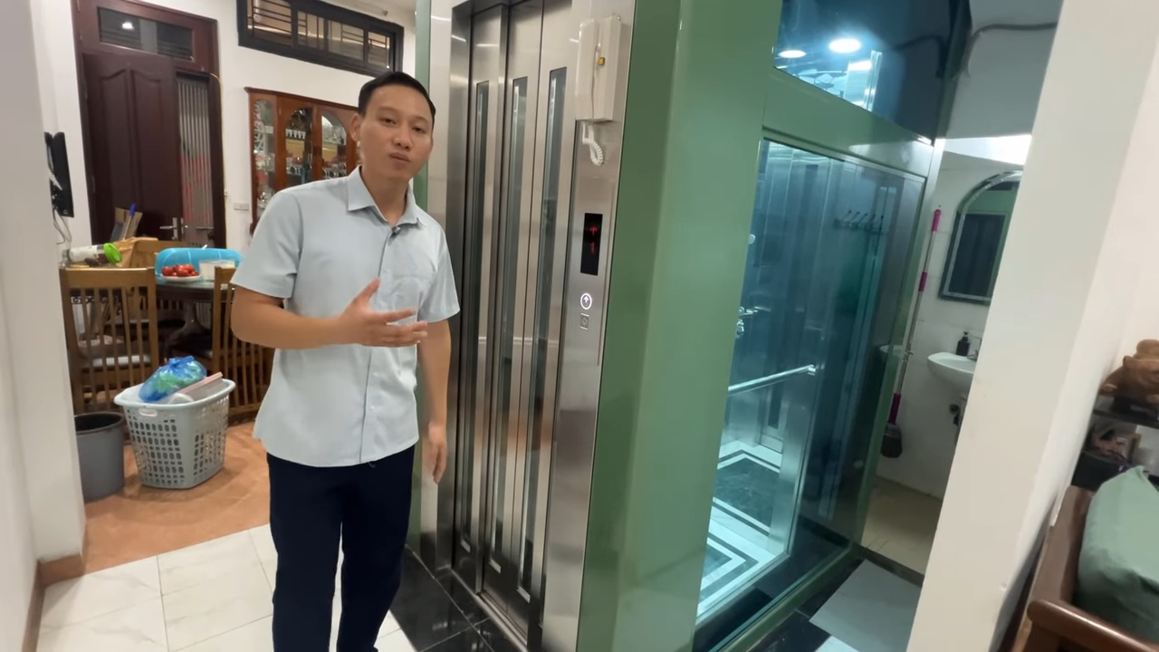 Chào anh chị, rất vui được gặp lại anh chị tại nhabephiendai.net. Hôm nay chúng ta cùng phân tích một giải pháp thang máy gia đình đang được nhiều nhà phố lựa chọn hiện nay: thang máy kính khung thép tải trọng 350kg với cửa mở tự động 4 cánh. Đây là phương án đặc biệt phù hợp với những ngôi nhà có diện tích hố thang hạn chế nhưng vẫn cần lối ra vào rộng rãi để thuận tiện di chuyển đồ đạc trong sinh hoạt hàng ngày. Mẫu thang máy này được thiết kế dựa trên nguyên tắc tối ưu diện tích sử dụng trong nhà phố. Thay vì sử dụng cột bê tông truyền thống có kích thước lớn, hệ khung thép chấn chỉ dày khoảng 40mm mỗi cạnh. Nhờ vậy không gian dành cho cabin được tận dụng tối đa, giúp thang máy nhỏ gọn nhưng vẫn đảm bảo sự thoải mái khi sử dụng.