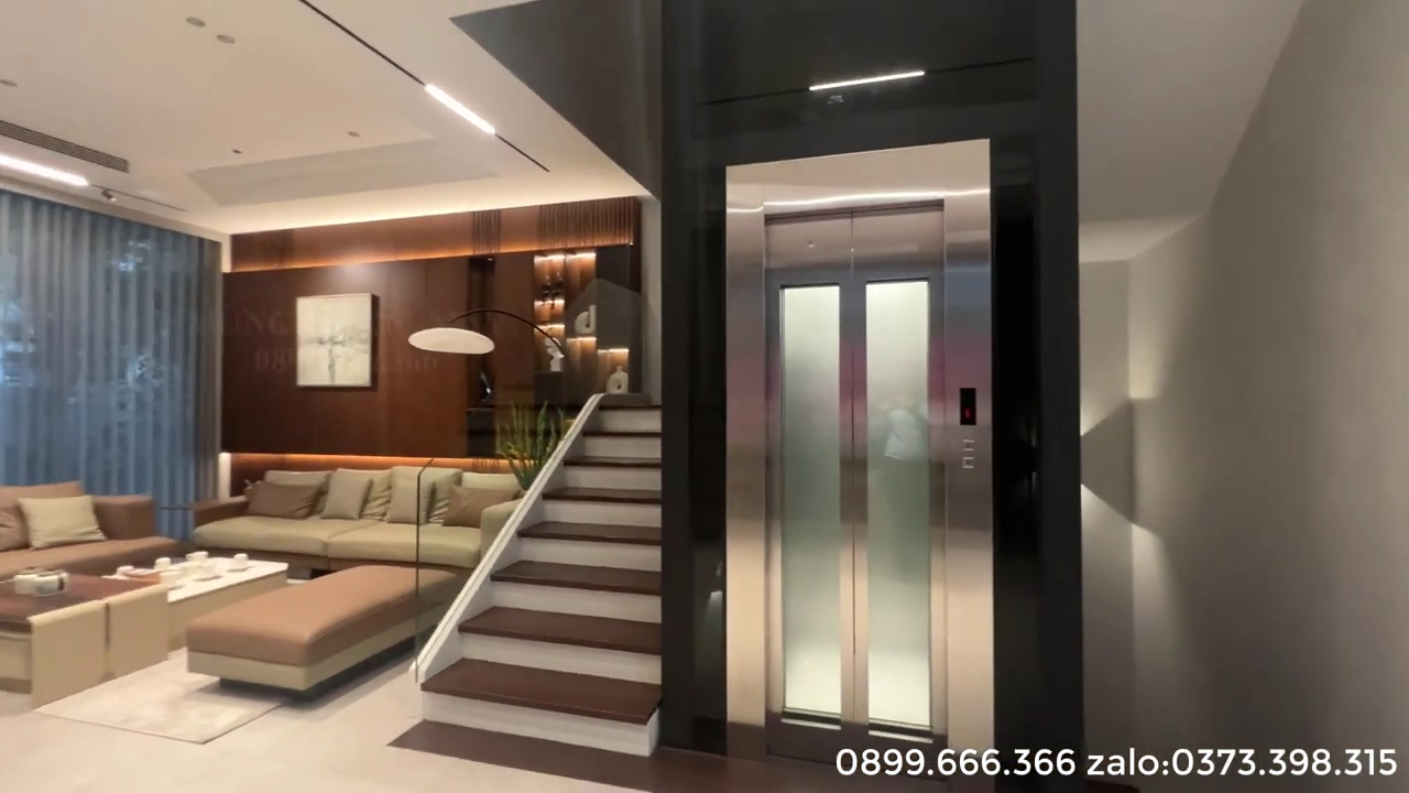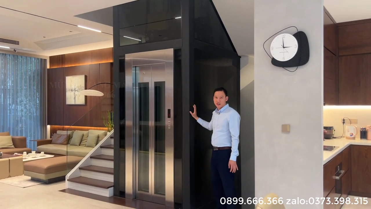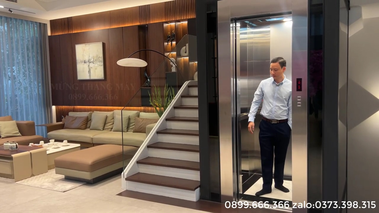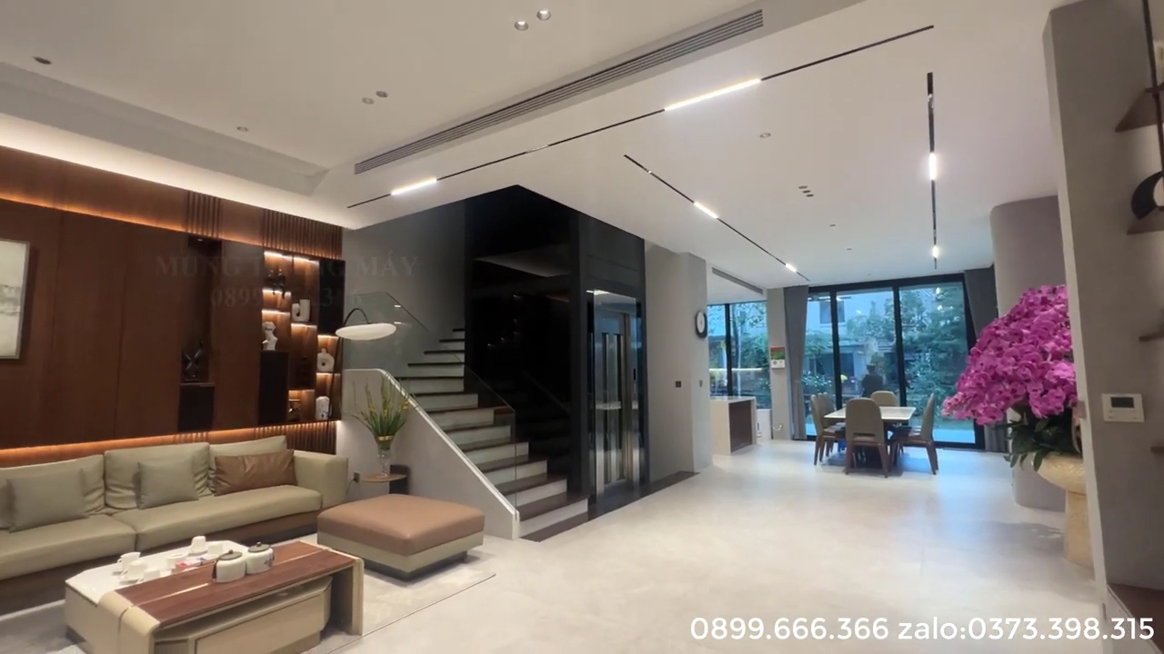Thang máy cũng được tích hợp hệ thống cứu hộ tự động ARD. Khi nguồn điện lưới bị mất đột ngột, bộ lưu điện sẽ cung cấp nguồn tạm thời cho tủ điều khiển và động cơ. Nhờ đó cabin có thể di chuyển về tầng gần nhất và tự động mở cửa để người bên trong bước ra ngoài an toàn mà không bị kẹt trong thang. Tổng thể công trình thang máy tại biệt thự Vinhomes Riverside Long Biên là sự kết hợp hoàn chỉnh giữa kết cấu khung thép chắc chắn, thiết kế kính hiện đại và hệ thống thiết bị nhập khẩu chất lượng cao. Với tải trọng 450kg, cabin rộng rãi cho 5 đến 6 người và hệ thống an toàn đa lớp, thang máy không chỉ đáp ứng nhu cầu di chuyển trong gia đình mà còn góp phần nâng tầm giá trị kiến trúc của toàn bộ căn biệt thự. Đối với các căn biệt thự có thiết kế tương tự tại các khu đô thị cao cấp, việc lựa chọn thang máy kính khung thép đặt giữa lòng thang bộ là một giải pháp rất đáng cân nhắc. Giải pháp này vừa tiết kiệm diện tích, vừa tạo ra một điểm nhấn kiến trúc hiện đại, đồng thời mang lại sự tiện nghi lâu dài cho gia đình trong quá trình sử dụng.