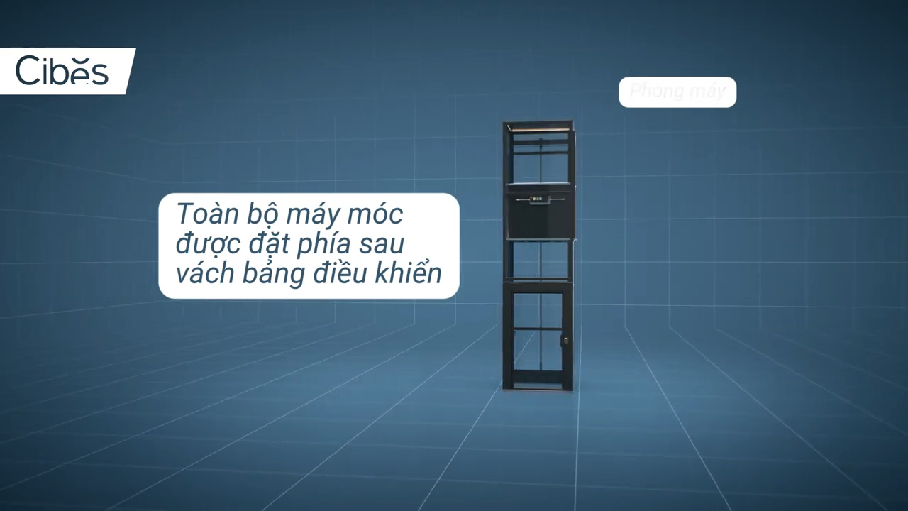 Đây là một cơ chế đơn giản nhưng cực kỳ hiệu quả và an toàn, đồng thời giúp tiết kiệm không gian hơn rất nhiều so với các dòng thang máy truyền thống. Với thiết kế nhỏ gọn, toàn bộ hệ thống máy móc của thang máy Cibes được đặt bên trong giếng thang, phía sau bảng điều khiển. Vì vậy, thang không cần đào hố pit sâu hay xây phòng máy như các loại thang máy thông thường, giúp hạn chế tối đa việc tác động đến kết cấu của ngôi nhà. Điều này đặc biệt phù hợp cho cả nhà đang sinh sống muốn cải tạo lắp thêm thang máy lẫn những ngôi nhà xây mới.