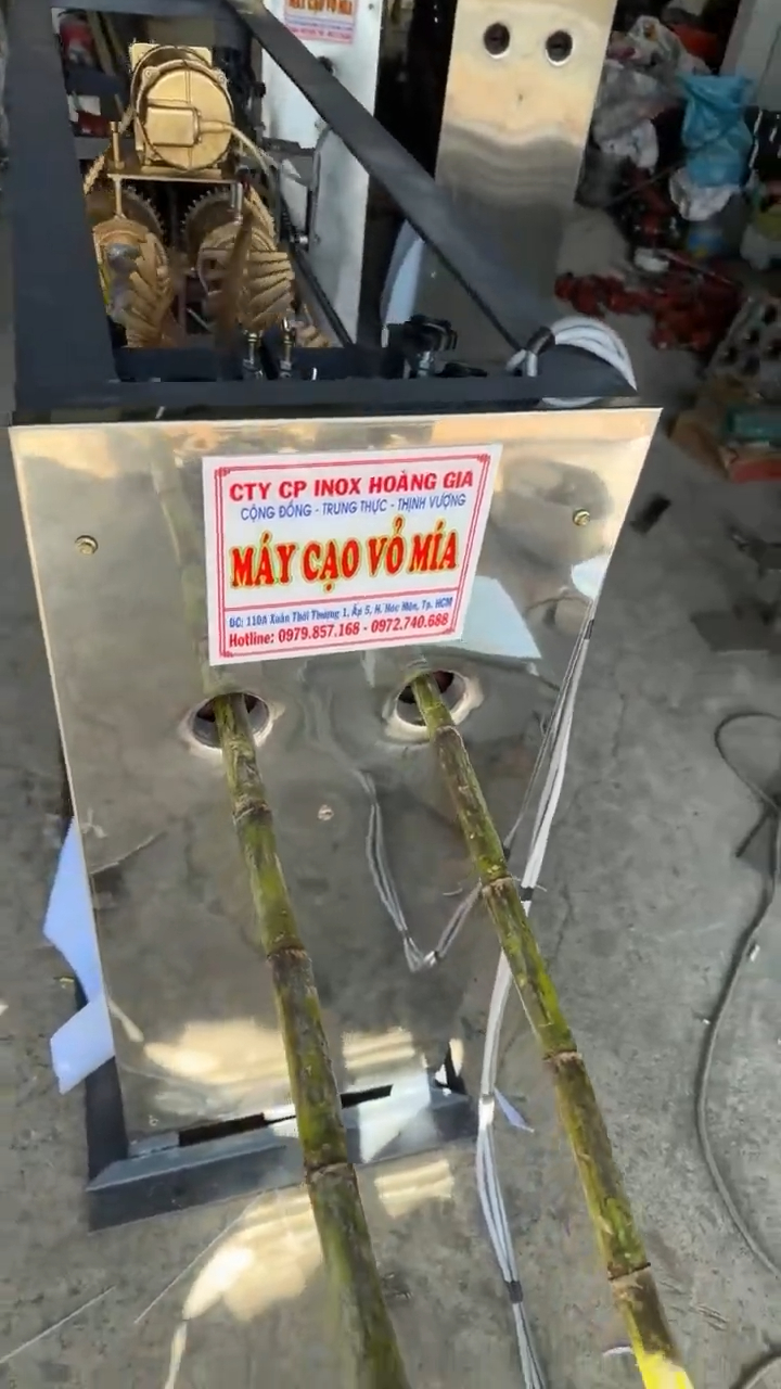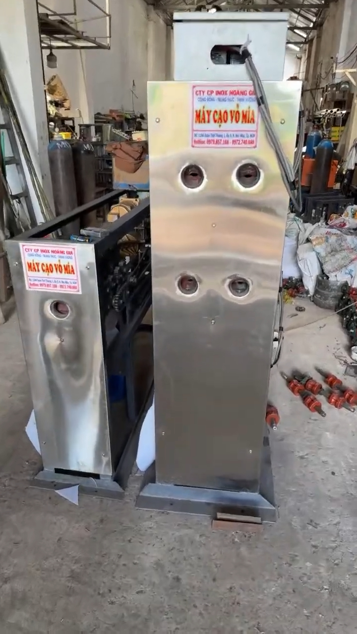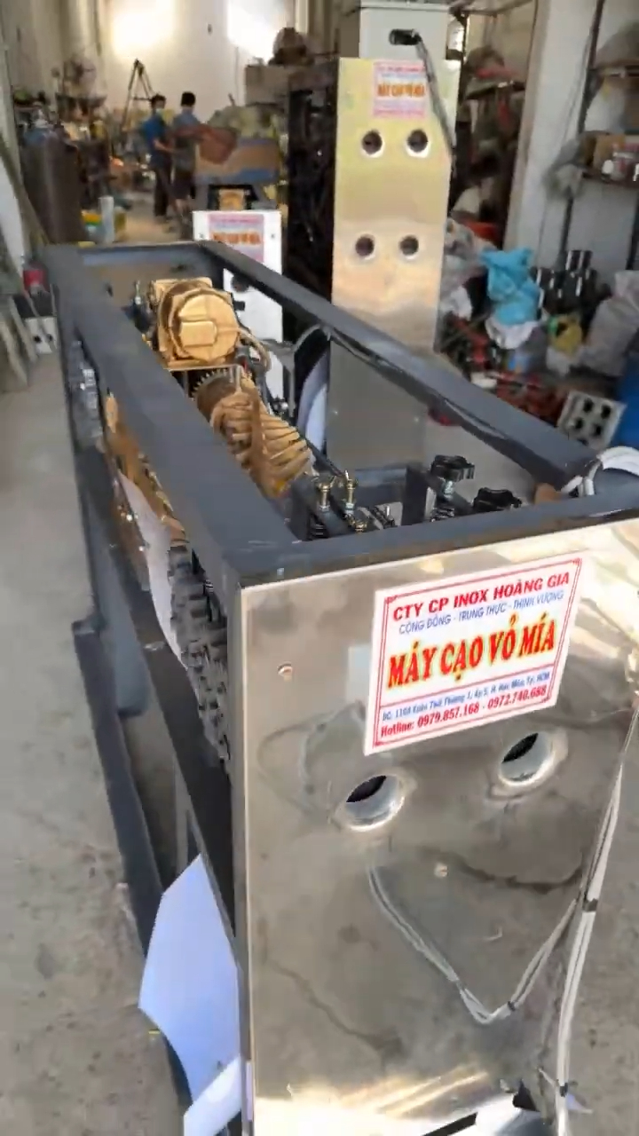 Hôm nay mình sẽ test thử chiếc máy cạo vỏ mía 2 cây tự động trước khi giao cho khách. Máy vừa mới hoàn thiện xong, vừa đấu điện xong và chưa cạo thử cây mía nào cả. Vì vậy trước khi gửi cho khách, mình sẽ chạy thử trực tiếp để kiểm tra xem máy hoạt động như thế nào.
