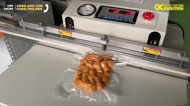 Xúc xích sau khi hút chân không được đóng gói chắc chắn, hạn chế vi khuẩn xâm nhập và kéo dài thời gian bảo quản. - Hút chân không cá viên – tôm viên – bò viên