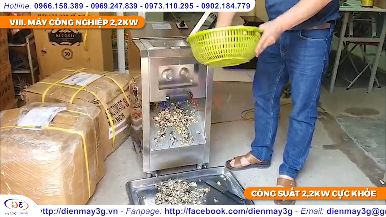 Hệ thống dây curoa và bánh đà lớn giúp máy chịu tải tốt, tốc độ quay khoảng 1400 vòng mỗi phút và đạt năng suất khoảng 400kg thịt mỗi giờ.