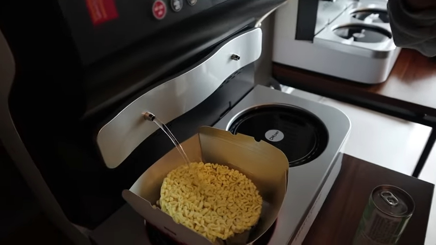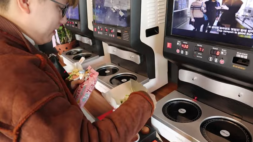 Sau khi nhấn nút bắt đầu, máy sẽ tự động cho nước vào bát và tiến hành đun sôi. Toàn bộ quá trình nấu đều được tự động hóa, người dùng không cần phải canh lửa hay điều chỉnh gì thêm. Thời gian nấu thường khoảng 4 phút tùy theo loại mì. Trong thời gian chờ, người dùng có thể cho thêm các gói gia vị, topping hoặc các nguyên liệu đi kèm như kim chi, xúc xích hoặc phô mai. Một điểm thú vị của mô hình quán mì tự nấu là khách hàng có thể vừa chờ mì chín vừa trò chuyện hoặc tận hưởng không gian quán. Khi hết thời gian nấu, máy sẽ tự động dừng và món mì đã sẵn sàng để thưởng thức.