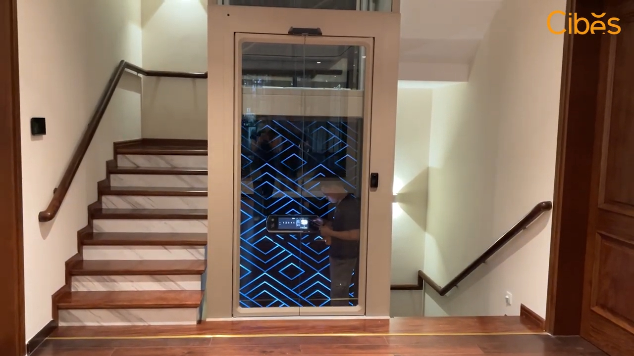 Nhờ sử dụng giếng thang với bốn mặt kính giúp thu ánh sáng tự nhiên cùng hệ thống bảng điều khiển hiện đại nên sau khi lắp đặt thang máy, không gian ngôi nhà như được bừng sáng và trở nên sang trọng hơn rất nhiều. Thang máy Cibes hoạt động bằng công nghệ trục vít tiên tiến, đảm bảo an toàn và không có tình trạng trôi thang. Bên cạnh đó, thiết kế bộ phận trục vít và hệ thống máy móc vô cùng tinh gọn giúp đảm bảo tính thẩm mỹ của thang máy kính khi lắp đặt trong nhà.