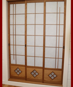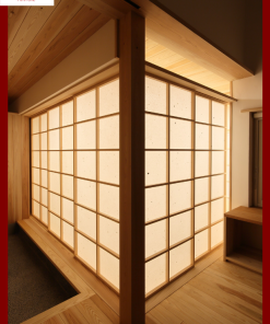 Một trong những điểm nhấn quan trọng là cửa trượt và vách ngăn Shoji – biểu tượng đặc trưng trong kiến trúc Nhật. Chất liệu giấy Shoji được làm từ cây dâu tằm, vừa bền vừa xuyên sáng, chống ẩm hiệu quả. Cấu tạo gồm hai lớp nan gỗ bao quanh lớp giấy ở giữa, kết dính bằng keo chuyên dụng, đảm bảo độ chắc chắn và thẩm mỹ. Thanh ray trượt được thiết kế giấu kín, giúp cửa hoạt động êm ái, tạo nên vẻ đẹp tinh tế và hoàn hảo trong từng chi tiết.