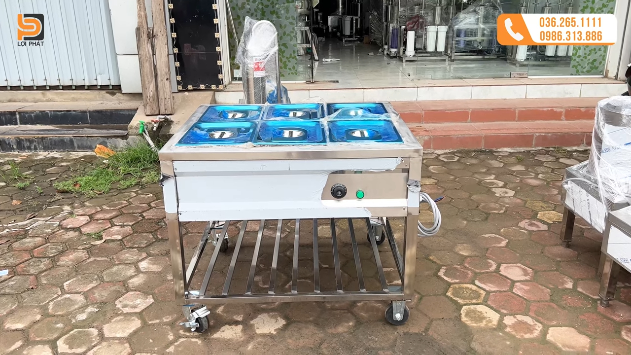 Tủ giữ nóng thức ăn 6 khay là thiết bị bếp công nghiệp được thiết kế chuyên dụng để giữ nóng nhiều loại món ăn khác nhau như cơm, món mặn, món xào hoặc các món ăn đã chế biến sẵn, nhờ thiết kế nhiều khay nên người dùng có thể sắp xếp thực phẩm gọn gàng và thuận tiện khi phục vụ khách hàng trong các quán cơm, nhà hàng hoặc bếp ăn tập thể.