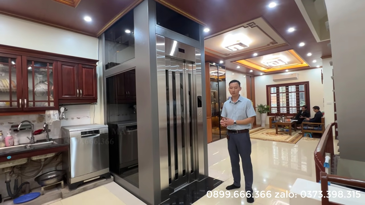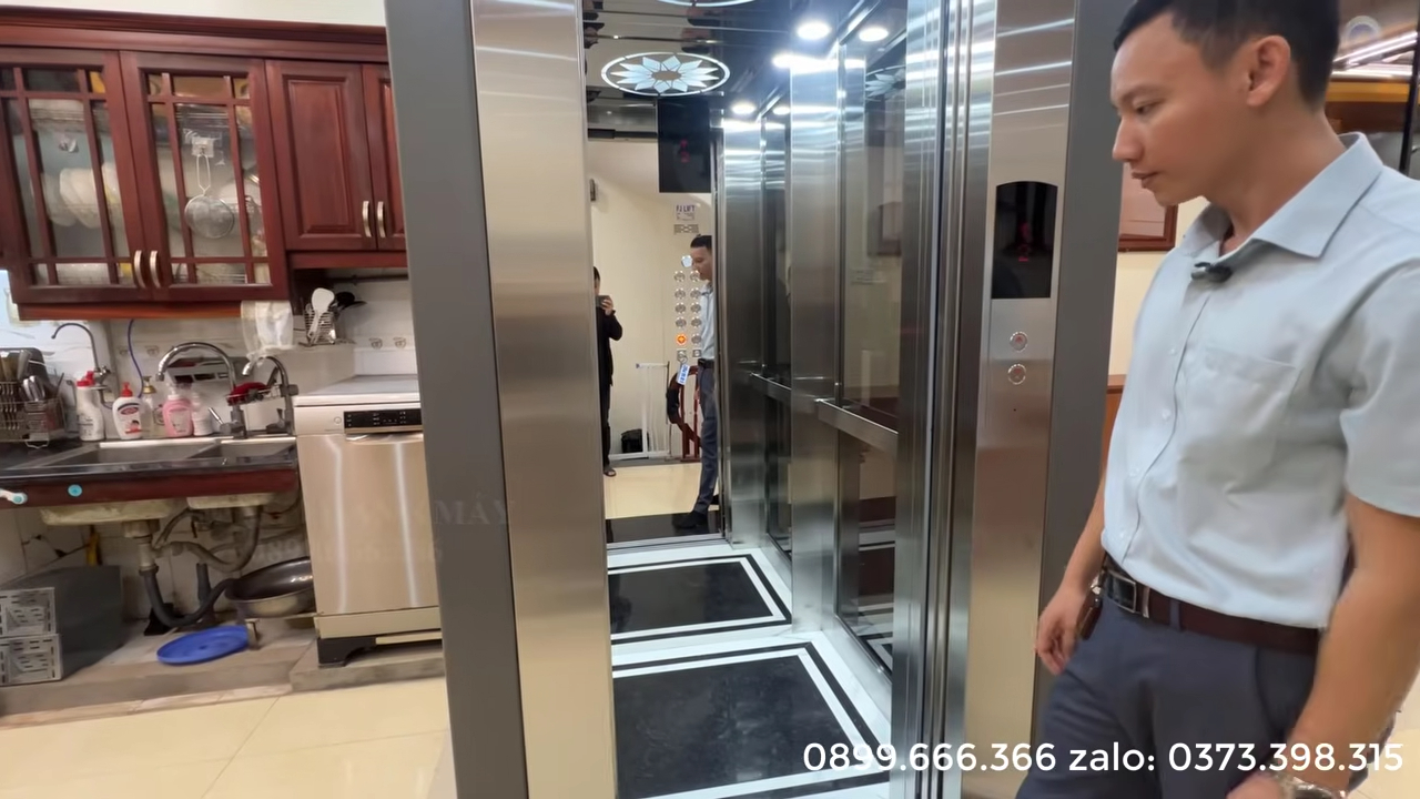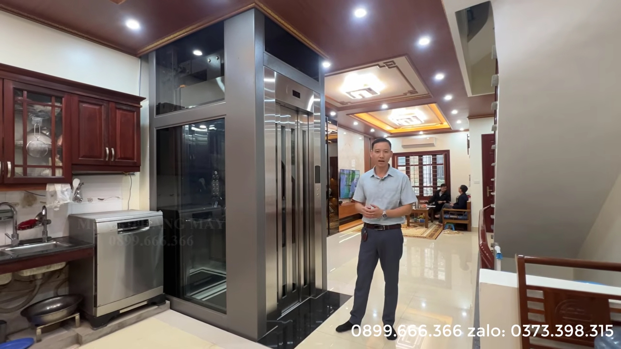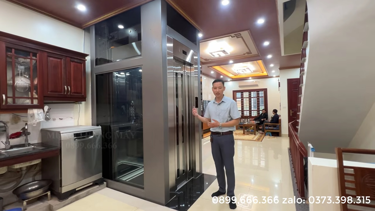 Thang máy được thiết kế để phục vụ nhu cầu cơ bản của gia đình từ 4 đến 5 người sử dụng cùng lúc, phù hợp với nhà phố hoặc nhà cải tạo có diện tích hạn chế.